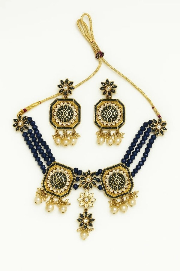 - Statement navy blue color necklaceset