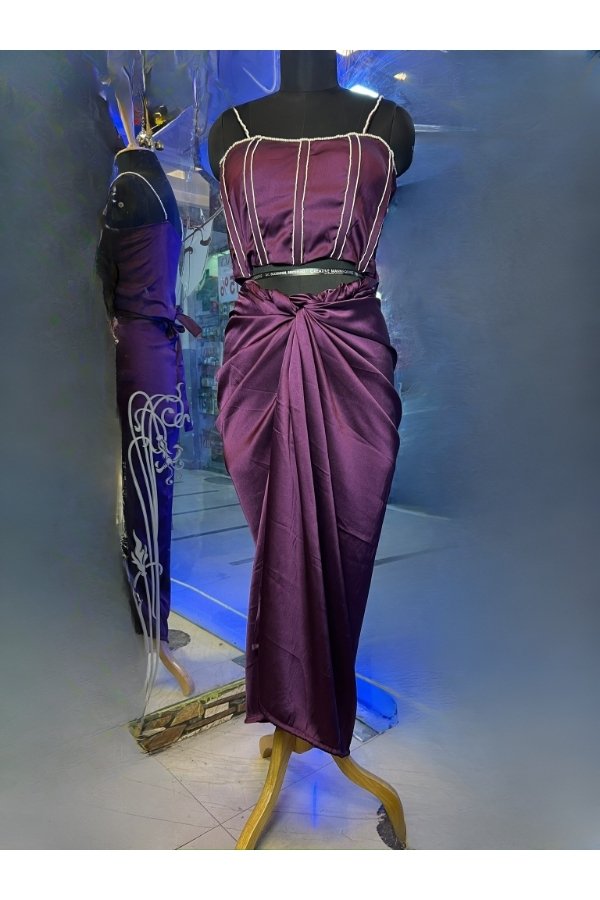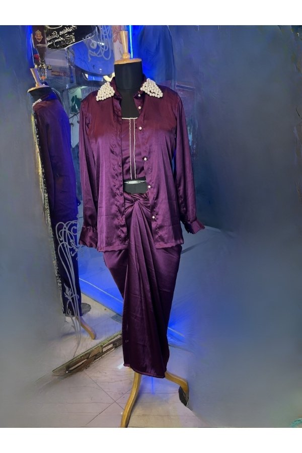 - 3 piece purple satin dress